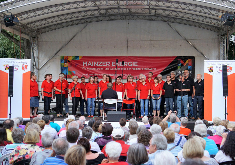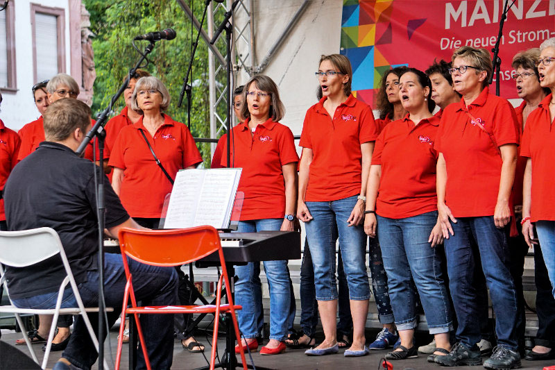 Es ist fast schon Tradition, dass der Heart Chor während der alljährlichen Veranstaltungsreihe „Mainz lebt auf seinen Plätzen“ auftritt und die neuesten Hits aus dem inzwischen sehr vielfältigen Repertoire zum Besten gibt. Neben dem preisgekrönten Hit von Adele sind es diesmal „We Are The World“ von Michael Jackson und der Evergreen „Live Is Life“ von Opus.